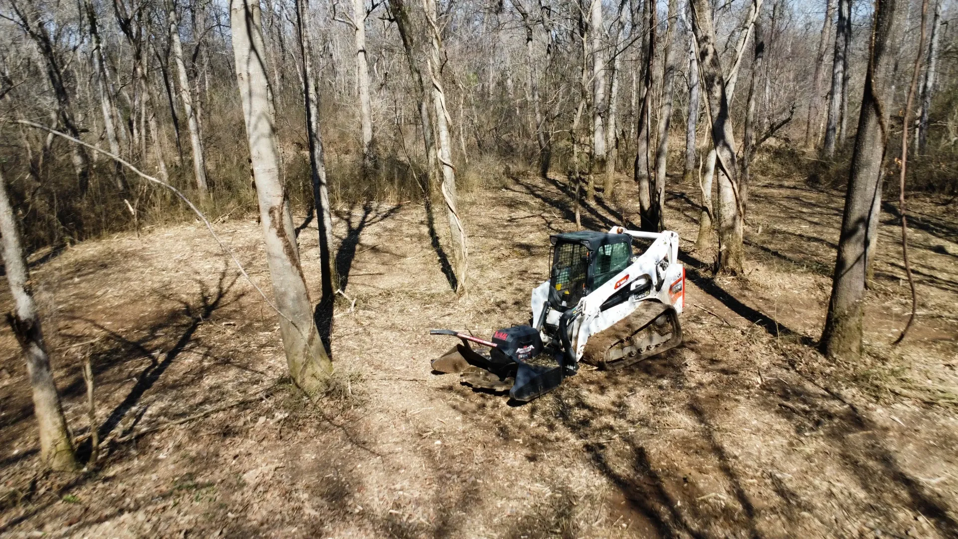 The process uses a rotating drum with carbide teeth that cuts through woody material and churns it into fine chips distributed evenly across the ground. This approach works well on wooded lots common throughout North Alabama, where dense understory growth accumulates quickly in humid conditions. The mulch layer left behind helps reduce erosion by slowing water movement across soil and supports healthier ground conditions as organic material breaks down over time.